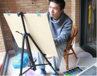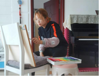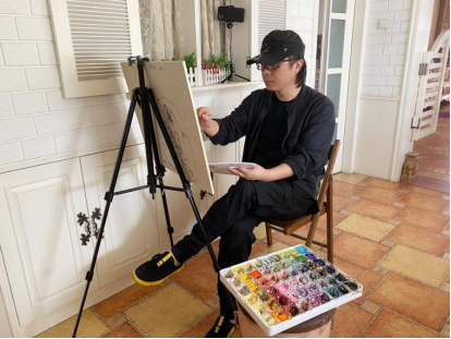 Processor Wu Wei explains painting skills and demonstrates the painting process in an online fine arts lesson.