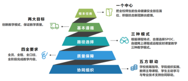 In the critical period to prevent and control the epidemic, SZU has formulated plans for online teaching implementation in accordance with the requirements of guaranteeing "safety, order, quality and quantity" and the principle of "starting schooling without returning to campus and suspending classes". At the same time, SZU relies on the platform of the University Open Online Courses (UOOC) to provide teaching resources, technical services and teacher-student training for universities across the country, contributing its own "SZU Strength". Since teaching innovation is vigorously promoted by SZU, the original schemes can be summarized as “one center, two objectives, three modes, four requirements, and five links”.