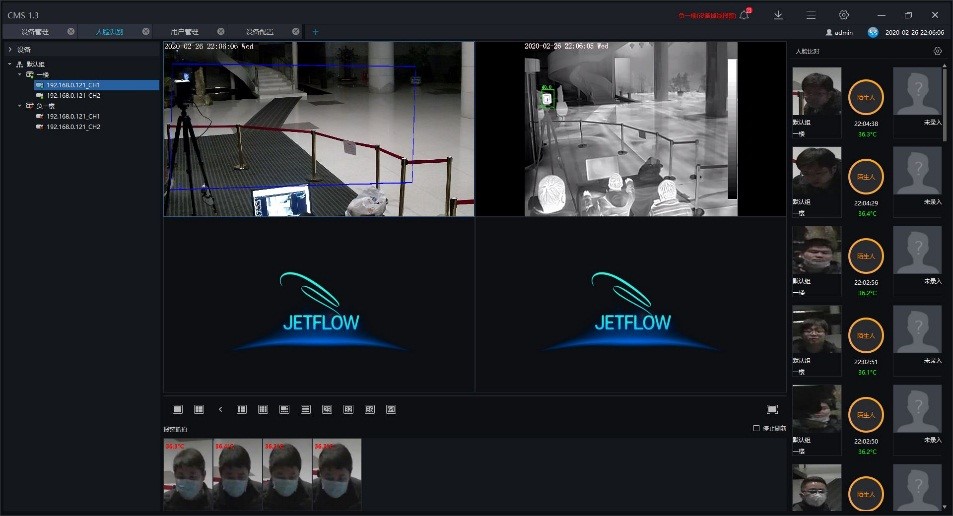 The lab and Jetflow also co-operate to design a twofold approach: first identify people with high body temperature through intelligent cameras, then locate individuals based on facial recognition. Moreover, with human identification and behavior analysis underlying this approach, the monitoring remains accurate even in crowded places and the recognition remains effective even if people are wearing masks.