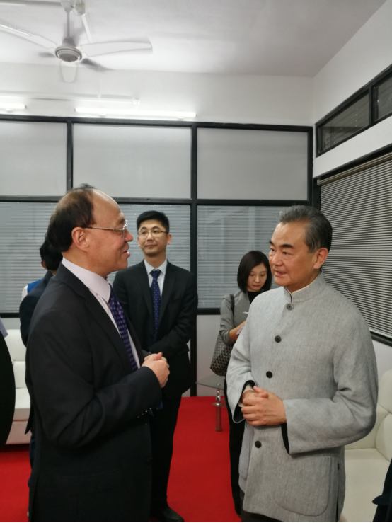 On December 22, Liu Hongyi and the delegation visited the University of Ambedkar in Aurangabad, India, to attend the closing ceremony of the “Dialogue of Civilizations between India and China”. This was one of the supporting activities for the First Meeting of the China-India High Level Mechanism on Cultural and People-to-People Exchanges. Liu Hongyi held a discussion with Professor B.A. Chopada, President of Ambedkar University. The two sides held in-depth consultations on teachers, students' international exchanges, and scientific research project cooperation, and signed a Letter of Intent for Cooperation to actively promote the international cooperation between the two universities. At the closing ceremony, Liu Hongyi and Chopada exchanged Letters of Intent for Cooperation under the witness of State Councilor and Foreign Minister Wang Yi and Chinese Ambassador to India Luo Zhaohui. Liu Hongyi also informed Wang Yi about the achievements of Shenzhen University in recent years. Wang Yi highly praised the progress of Shenzhen University and the development of international cooperation.