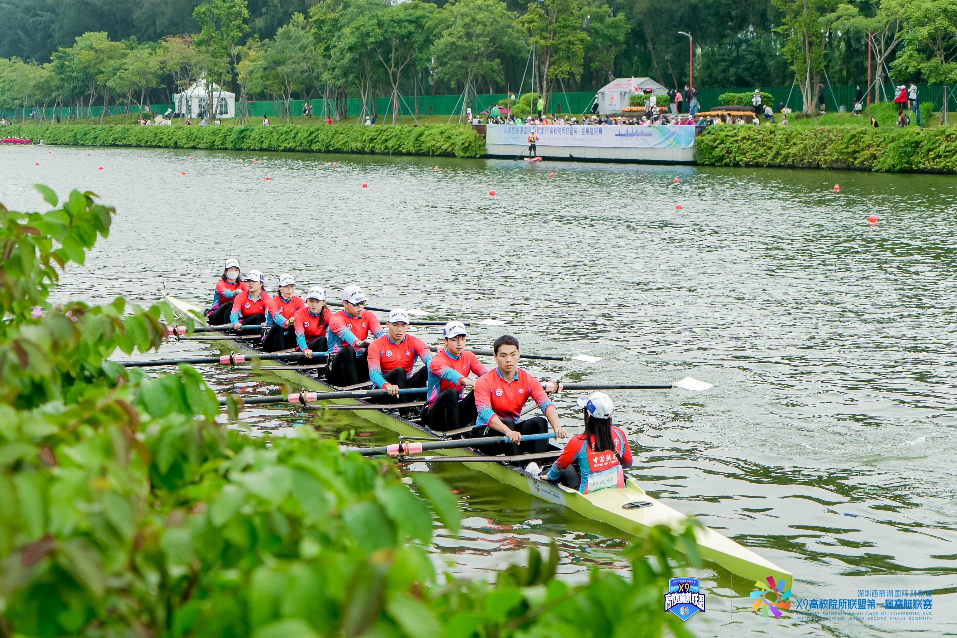 The rowing team of Shenzhen University (SZU) won gold at the first stage of the first Shenzhen X9 Alliance of Universities and Institutes Rowing League Around X-lake Sciensity yesterday.