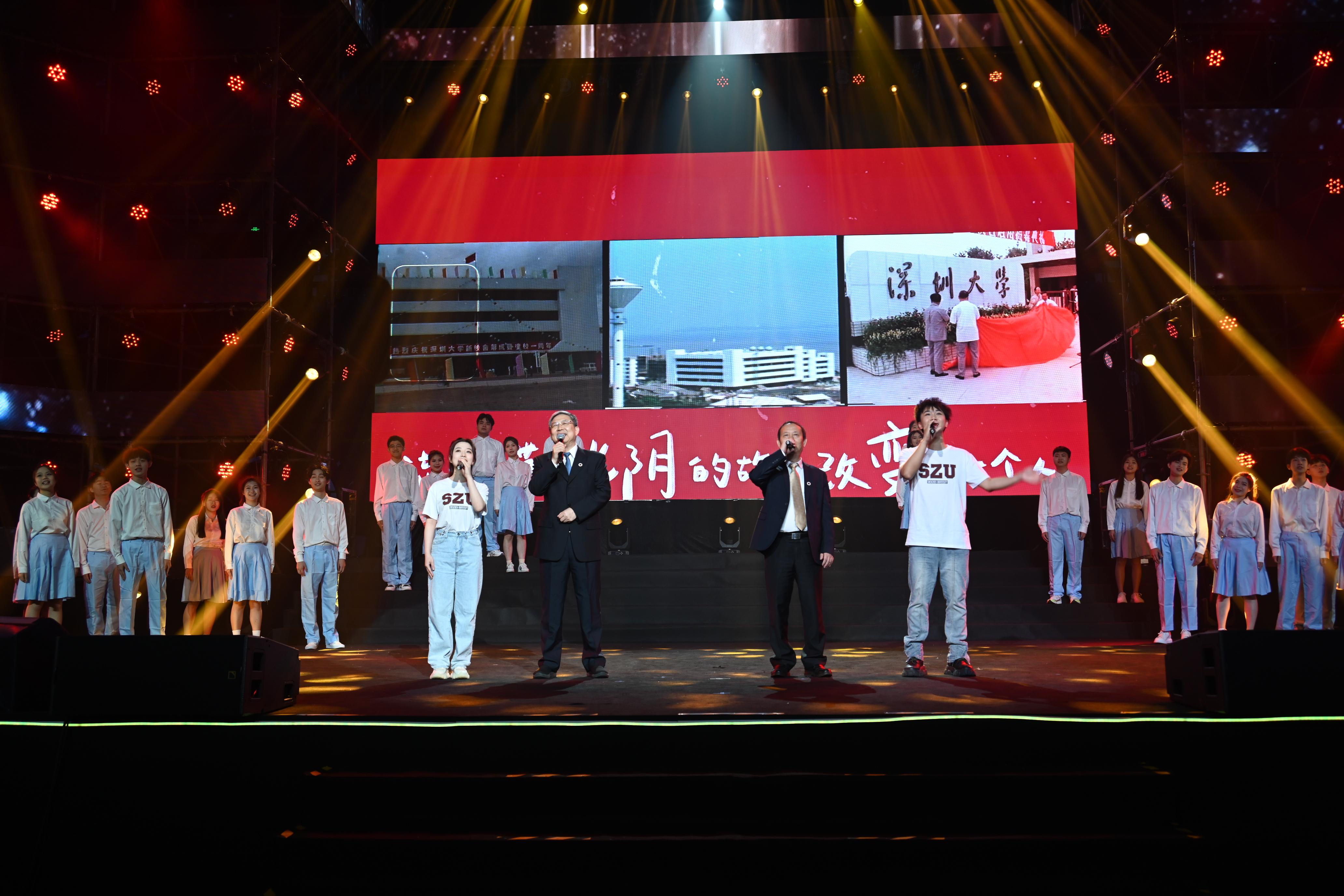 The Concert features the chorus performace Story of Time. The song, jointly performaced by guests and SZUers including Li Qingquan and Mao Junfa, marks the passing 40 years of outstanding achievement for SZU.