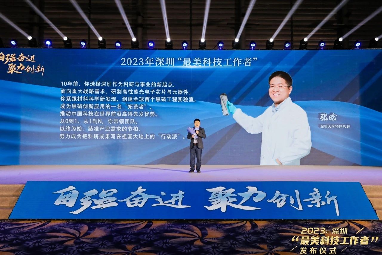 On 30 May 2023, marking the seventh National Science and Technology Workers' Day, a ceremony was held at the Shenzhen Convention and Exhibition Centre topresent theaward of “Shenzhen’s Most Beautiful Science and Technology Workers”. At the ceremony, 10 honorees and their advanced deeds were announced, including two professors at SZU:Huang Hui, Dean of the College of Computer and Software, and Zhang Han, Professor atthe College of Physicsand Optoelectronic Engineering.