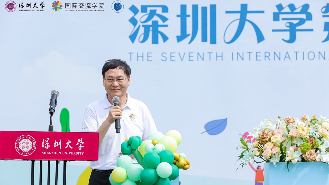 Zhang Xueji, vice president of Shenzhen University, delivers an opening speech.
