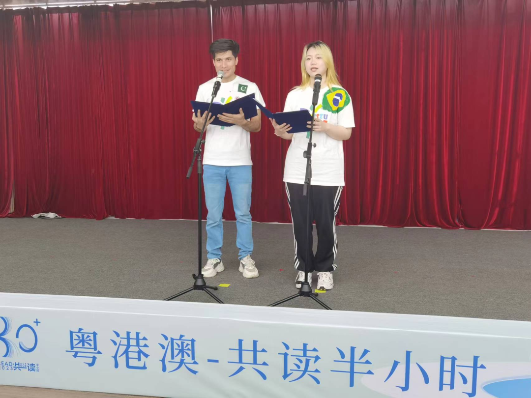 One who is filled with knowledge always behaves with elegance, and the fragrance of books can lead to great success.On April 23rd, Another "World Reading Day",theCollegeof International Exchange at Shenzhen University held the 2023 Guangdong Hong Kong Macao "Read for Half an Hour Together" event in the lecture hall of the Huizhi Building (South Library) of Shenzhen University, in order to further spread Chinese classics and tell the story of China. 22 international students from 15 countries from our school participated in the event, which was a relay reading day for all.