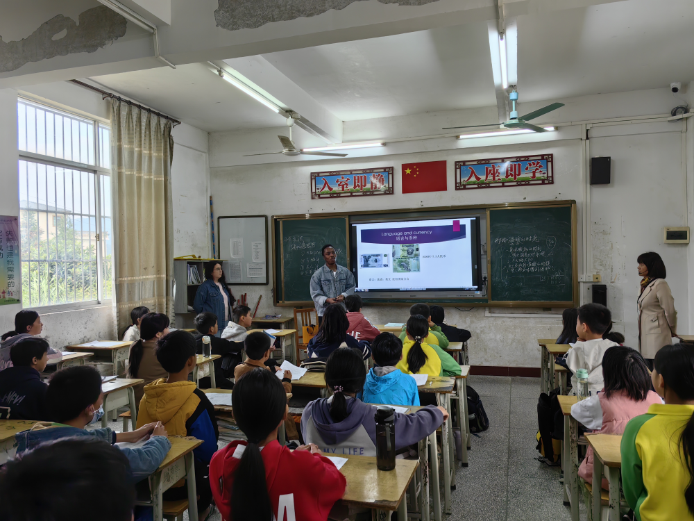 ThestudentsalsogavealivelyinternationalcultureclasstolocalprimaryschoolstudentsinHeyuan,introducingtheircountry'straditionalcustomsandlandmarks,andpresenting giftstoeachother.