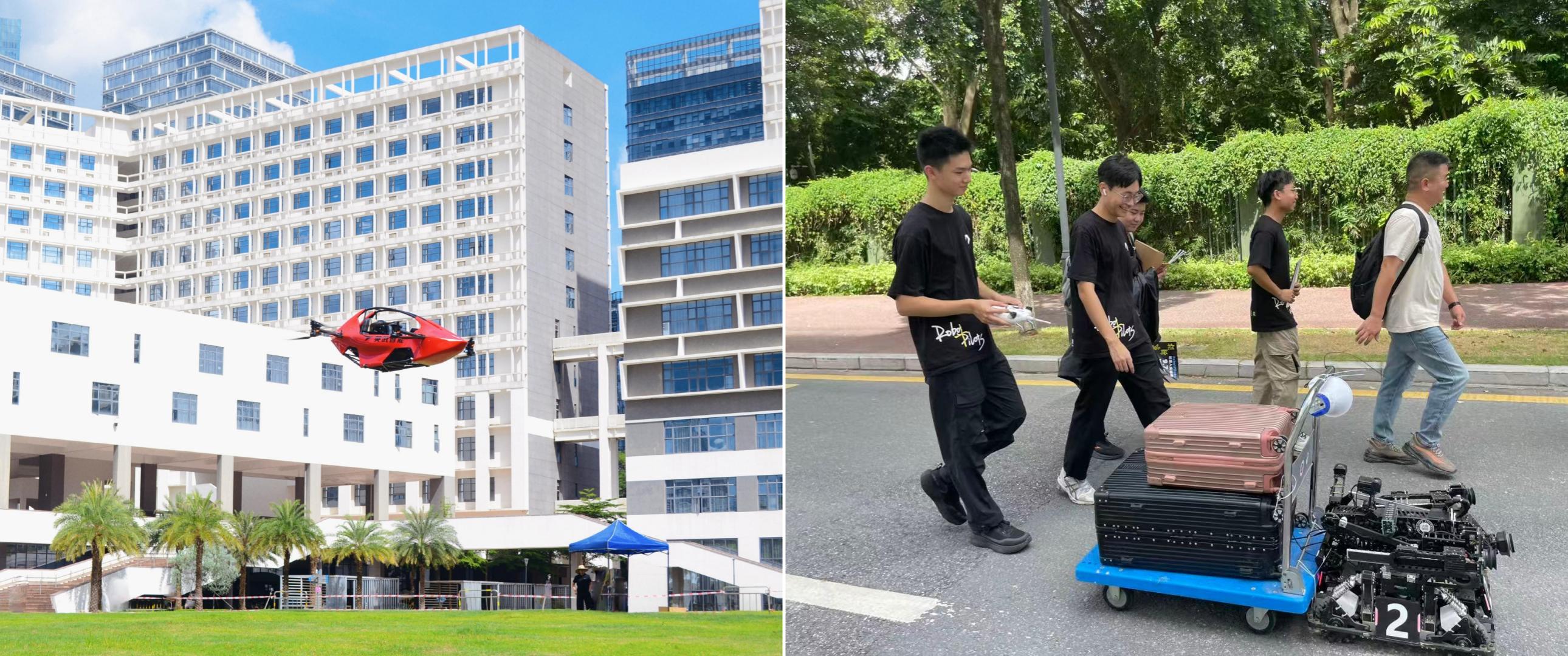 On the vast lawn in the Southern Area, a lightweight manned aircraft—jointly developed by SZU's College of Mechatronics and Control Engineering and Shenzhen Yingwu Intelligent Technology Co., Ltd.—took flight, offering a futuristic welcome gift to the incoming class. Along campus pathways, members of the Robot Pilots club operated remote-controlled robots under half a meter tall, smoothly towing luggage over a meter high. The six-axis robotic arm design made the robots exceptionally compact and agile.